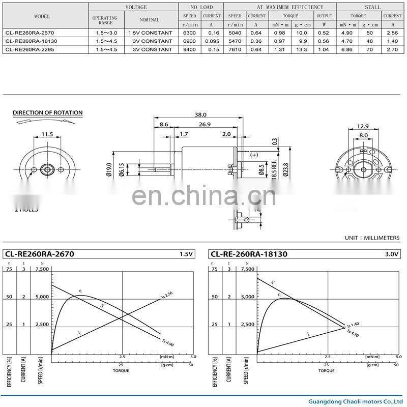 CL-RE260RA DC Motor CL-RE260RA 1.5v DC Motor magnet dc motor