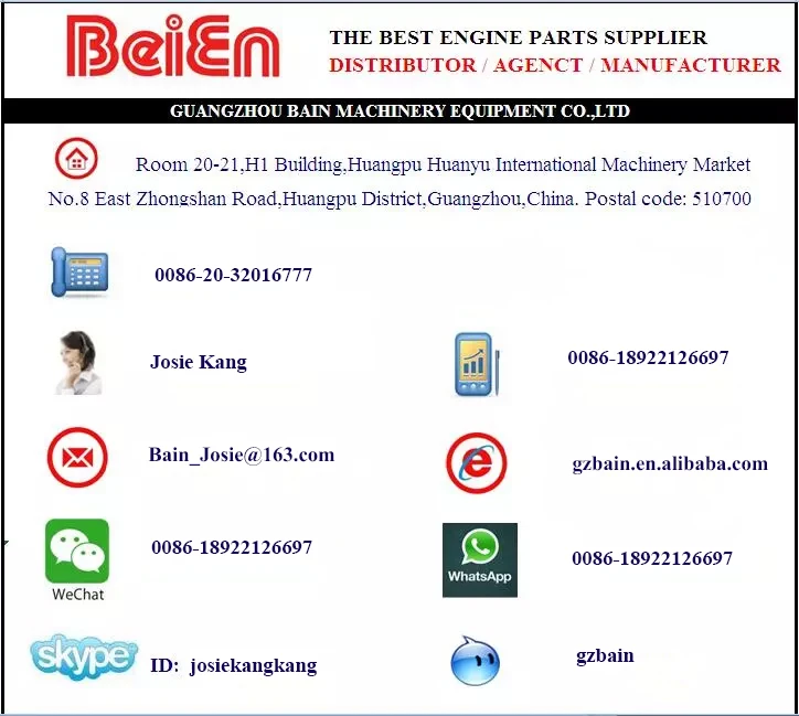A: Our main products are Liner kit, piston, rings, liner, gasket kit, bearing, injection pump, injector nozzle, water pump, oil pump, crankshaft, turbocharger, filter, ect.