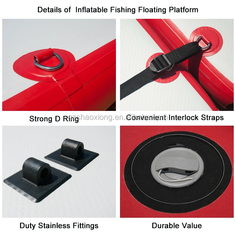 This inflatable fishing floating platform a perfect island swimming, playing, working, or just relaxing. Ideal as a lounge, swim raft or launch pad for any water sports. The island balances performance, style and value in a remarkably versatile and inflatable drop stitch platform. Designed with heavy duty stainless fittings and convenient interlock straps for modular use.