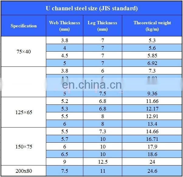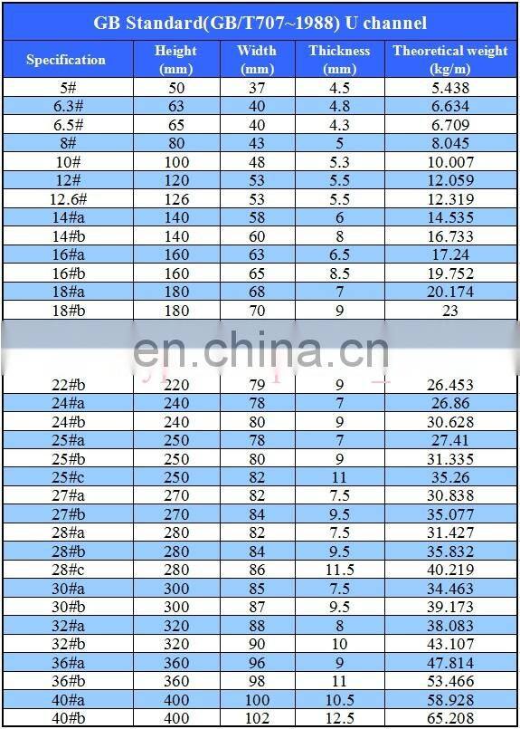 Steel U Channel Weight Channel Size Channel U Chart