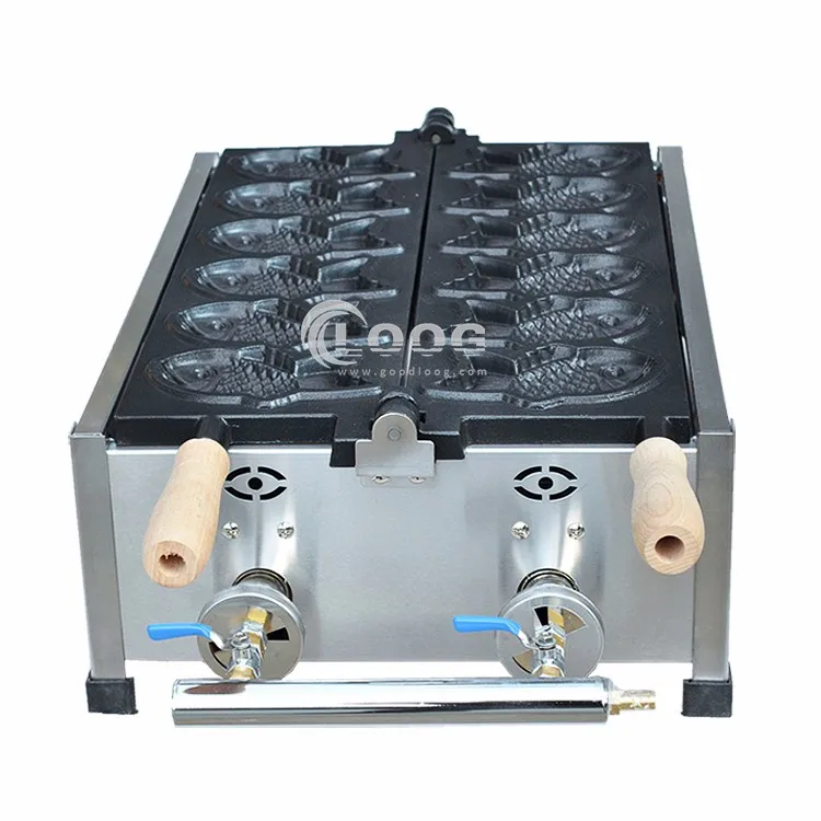 Stainless Steel Gas Taiyaki Making Machine / 3layers Nonstick Fish Taiyaki Baker