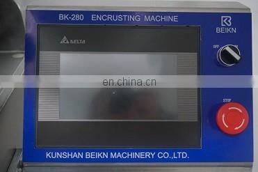 It joints all the parameter setting together in one PLC touch screen. Comparing with normal encrusting machine, it is with smaller size but more efficiency and higher production speed. As well as simple operation and easy maintenance by improving design in many details.Production Feature:
