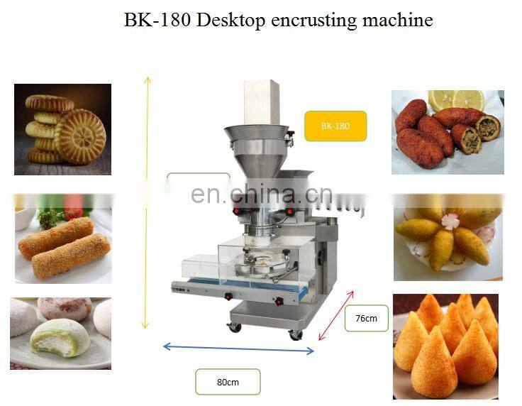 BK-180 desktop Brazil coxinha forming machine coxinha maker machine is a mini type machine we special design for small business use like store, bakery shop or home. It can make kinds of filled cookies like Kubba/Coxinha/Meatball/ Croquetas/ Mochi/ Cheese ball/ Churros/ Riceball/Onigiri/Nastar/Rasgulla/ Piroshki/Maamoul/ seasame ball/Pineapple cake/ date bar/ Chocolate filled cookies and so on.