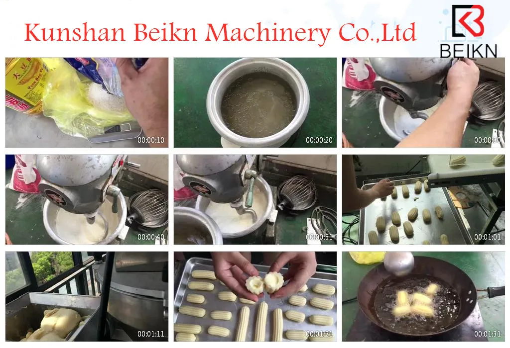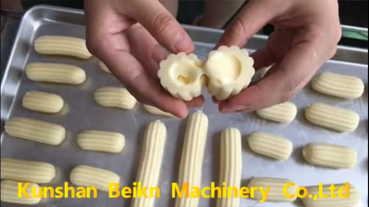 BK-180 small type churros encrusting machine is a small size machine,it is easy to operation,install and clean.304 stainless steel for machine body and parts in contact with the products are food grade to ensure safety and healthy.The machine can make different products by changing mould/shutter.Control panel ,the ratio of dough&filling can be adjustable according to your request.
