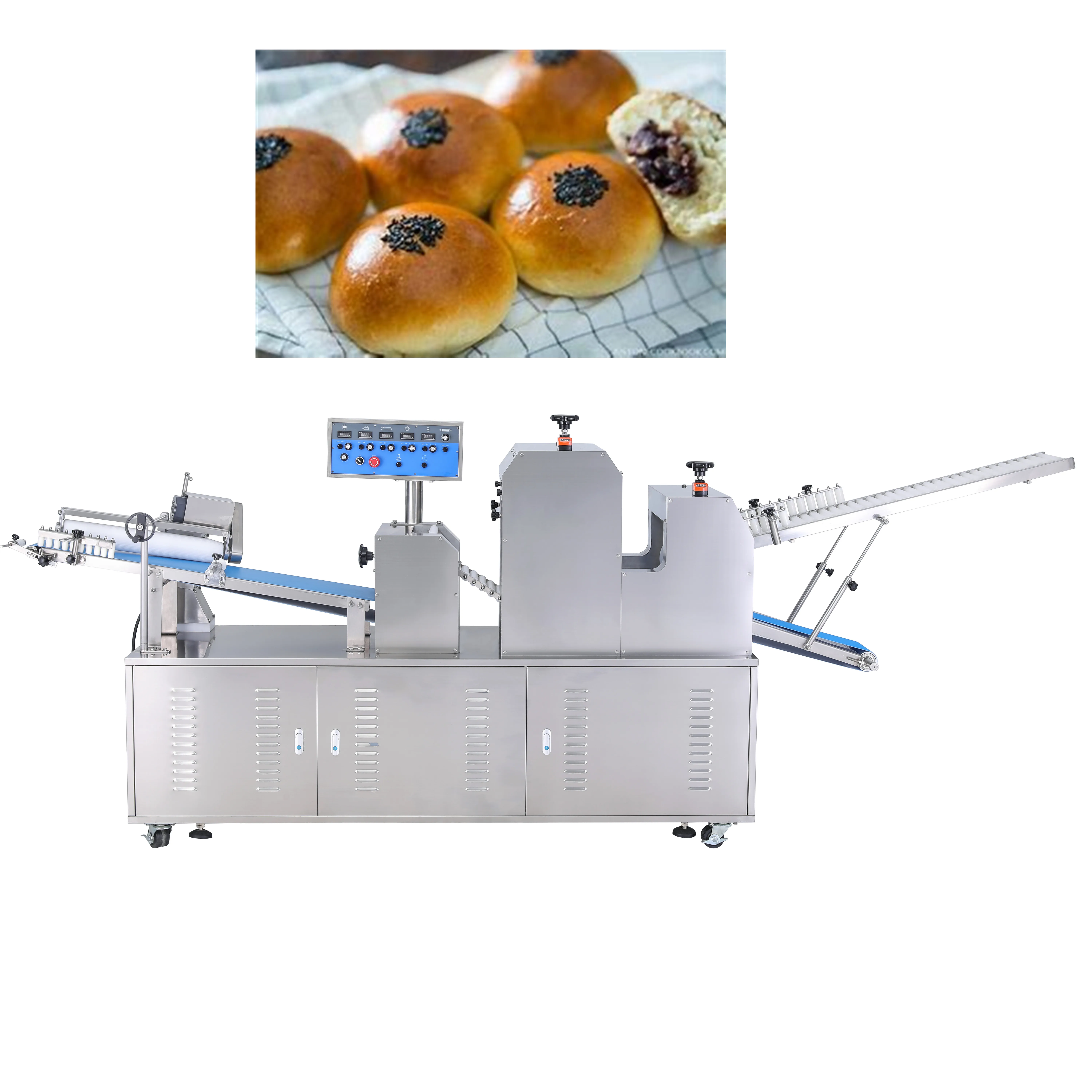 And also can add a hopper for filling food, like kubba, coxinha, maamoul, filled cookies, mooncake, chocolate chip cookies, designed cookies,etc.