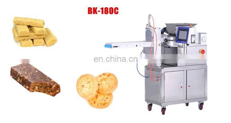 BK-180C energy bar making machine energy bar extruder is changed based on the desktop encrusting machine, This machine has only one hopper with cutter device which can cutter cookies according to your size and shape. You can make different food shape by changing nozzle.