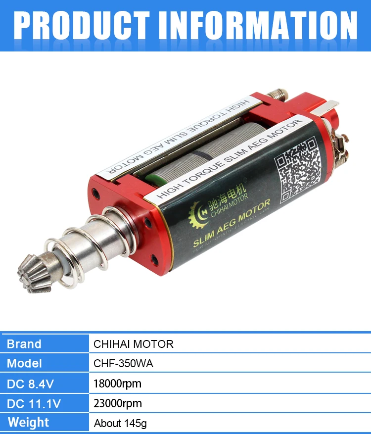 Chihai Motor CHF-350WA Golden Nd-Fe-B DC 11.1V High Torque Use With Slim Motor Pistol Grip Long Shaft AEG Motor