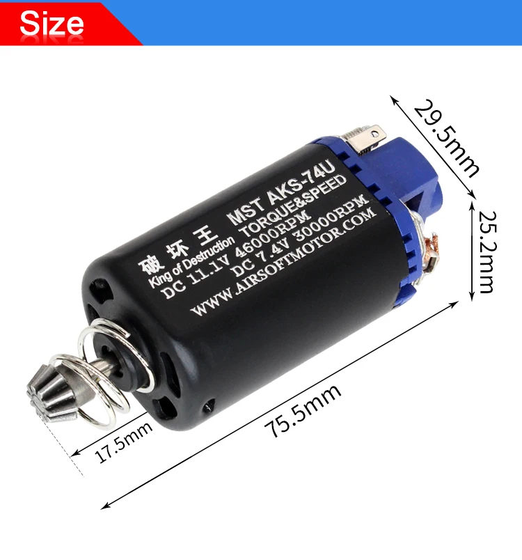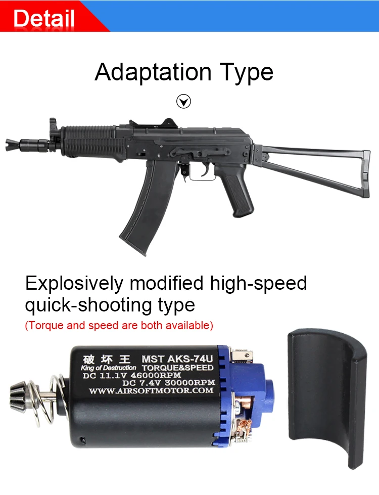 Home > Products > gel blaster parts > CHF-480VA-11460 AEG Motor Short Axle AEG Airsoft Gun Accessories MST AKS-74U High Torque/ High Speed Motor Gears