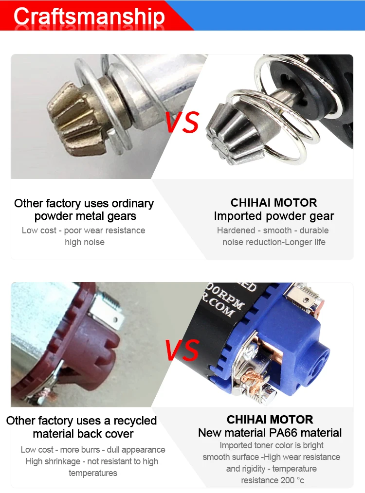 Chihai Motor CHF-480WA-8014T N35 Nd-Fe-B High Torque AEG Motor With Ball Bearing Long Axis for M4A1-J9 ACR-J10 Blaster Gel Toy