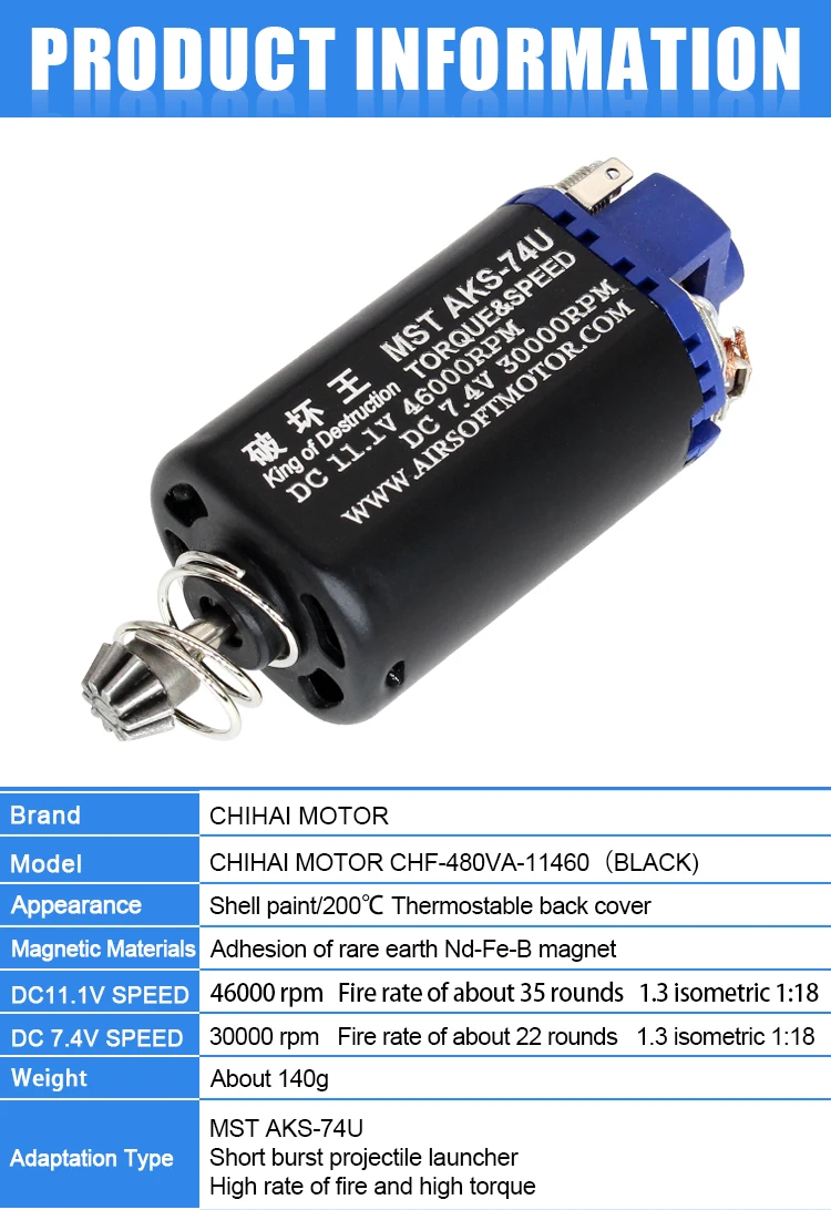 CHF-480VA-11460 AEG Motor Short Axle AEG Airsoft Gun Accessories MST AKS-74U High Torque/ High Speed Motor Gears