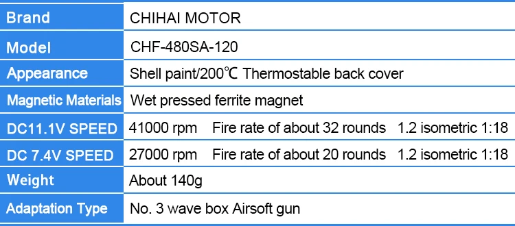 Chihai Motor CHF-480S-11340B No. 2 Wave Box DC 11.1V 34000rpm dc Motor for Airsoft Gun /M90-M120/ JIN MING M4A1-J9/ACR-J10