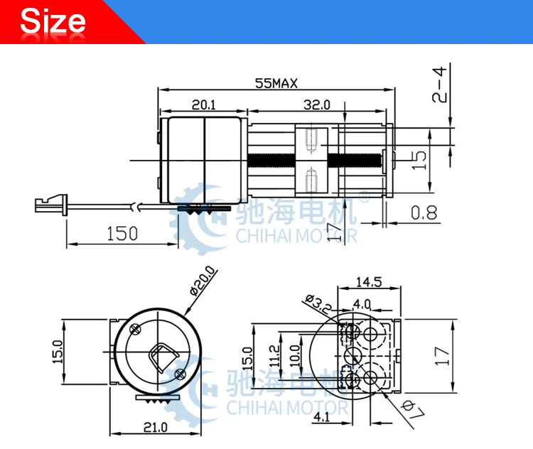 Home > Products > Stepper motor > Chihai Motor CHS-SM2016-SS32 20mm Micro Slider Linear Stepping Motor Screw Motor With Bracket for Micro 3D Printer