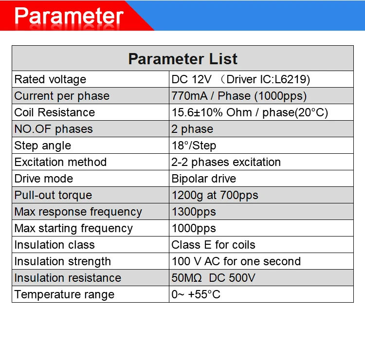 Voltage range: | DC 12.0V (Driver IC:L6219) | ||||||