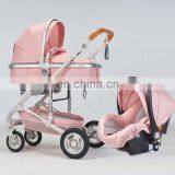 China 2019 New Model Dsland Baby Stroller / 3 in 1 Functions Baby Pram Stroller / Leather Baby Carriage With Car Seat