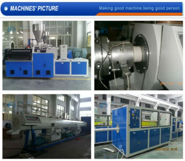 3.Our plastic making machine can make many kinds of plastic productions like:PVC pipe,CPVC pipe,PE/HDPE/PE-RT pipe,PP-R pipe,plastic foamed profile,WPC profile and panel,wood plastic composite and so on.