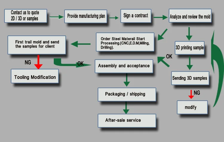 4. Making mold(moulds): Confirm drawing, start to do DFM, mold flows and mold detail agreed with the customer, start producion.