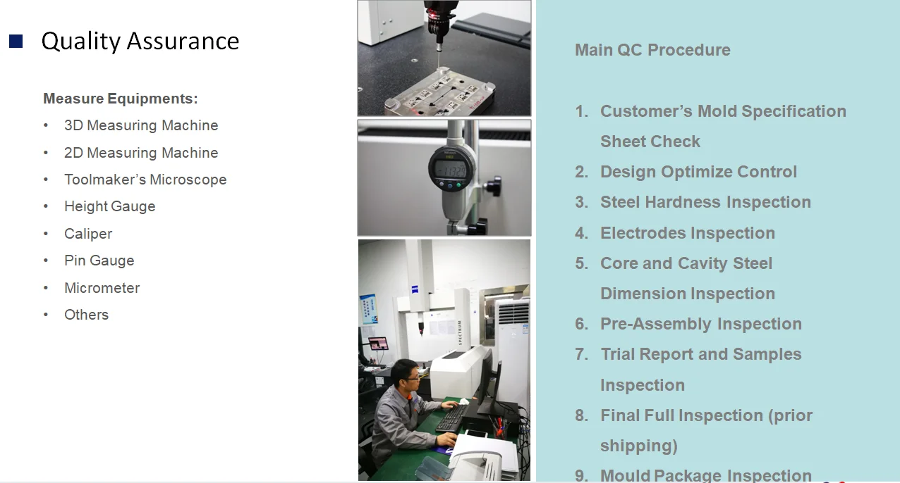 Mold making(full dimension measurement)->Mold trial(free samples, FAI, CPK)->
