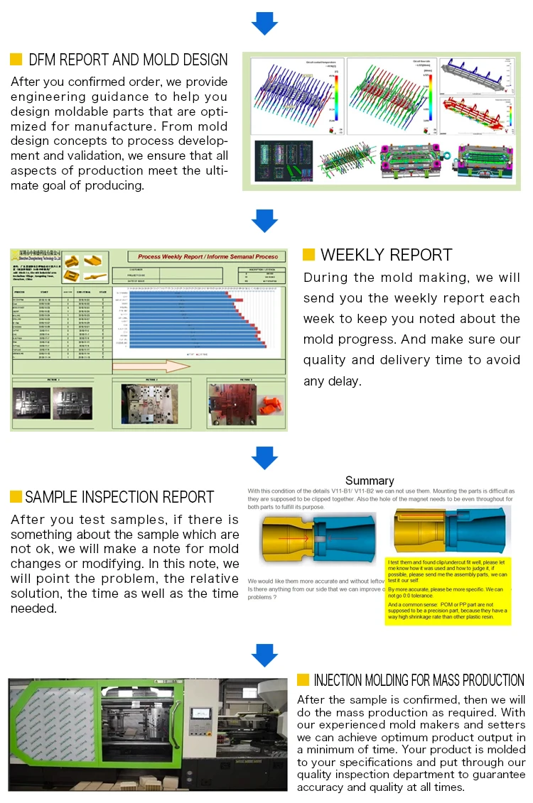 6.DELIVERY:we can work flexible to meet client's urgently delivery needs,we have been made 40 sets of plastic injection molds within 60 days under high pressure,customer was superised with our quality and short lead time and praise we created the miracle.