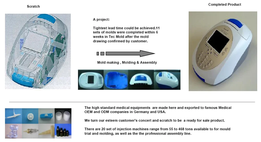 2. ADVANCED FACILITIES: Equipped with the most advanced software for designing, analyzing and manufacturing, Imported a lot of sets high precision plastic mould machines from German and Japan, including High Speed CNC, EDM, Wire Cutting Machine, and CMM Inspection Machines and so on