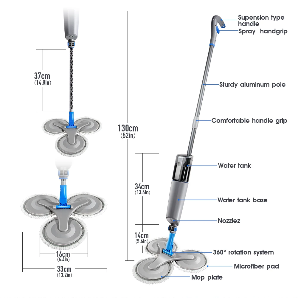 Masthome Household Easy Cleaning Microfiber Flat Mop 3 In 1 Magic Mop With Spray