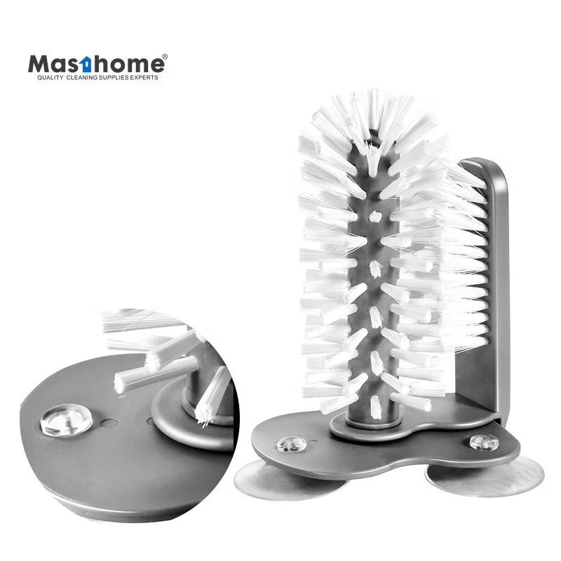 Masthom High Quality Durable Stainless Steel Shaft PET Filament Short TPR Handle Cup Bottle Brush for Household