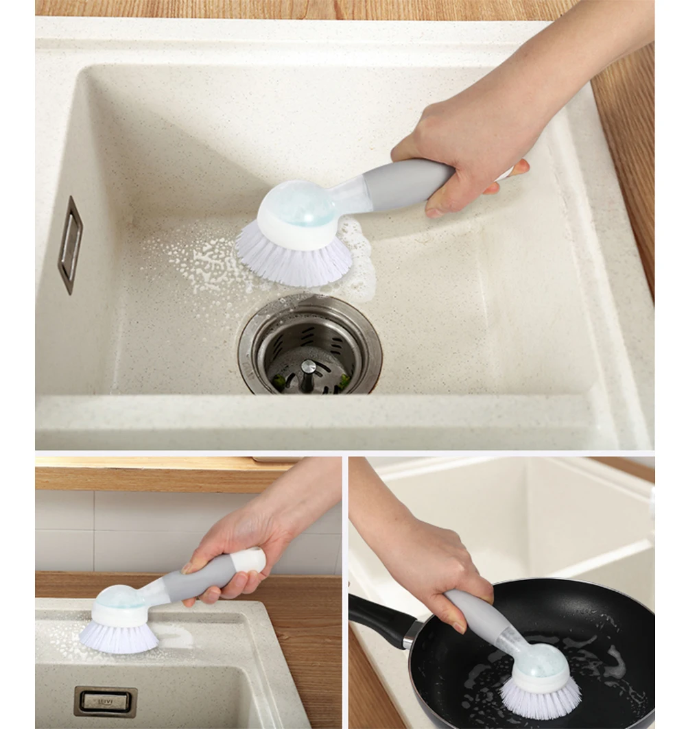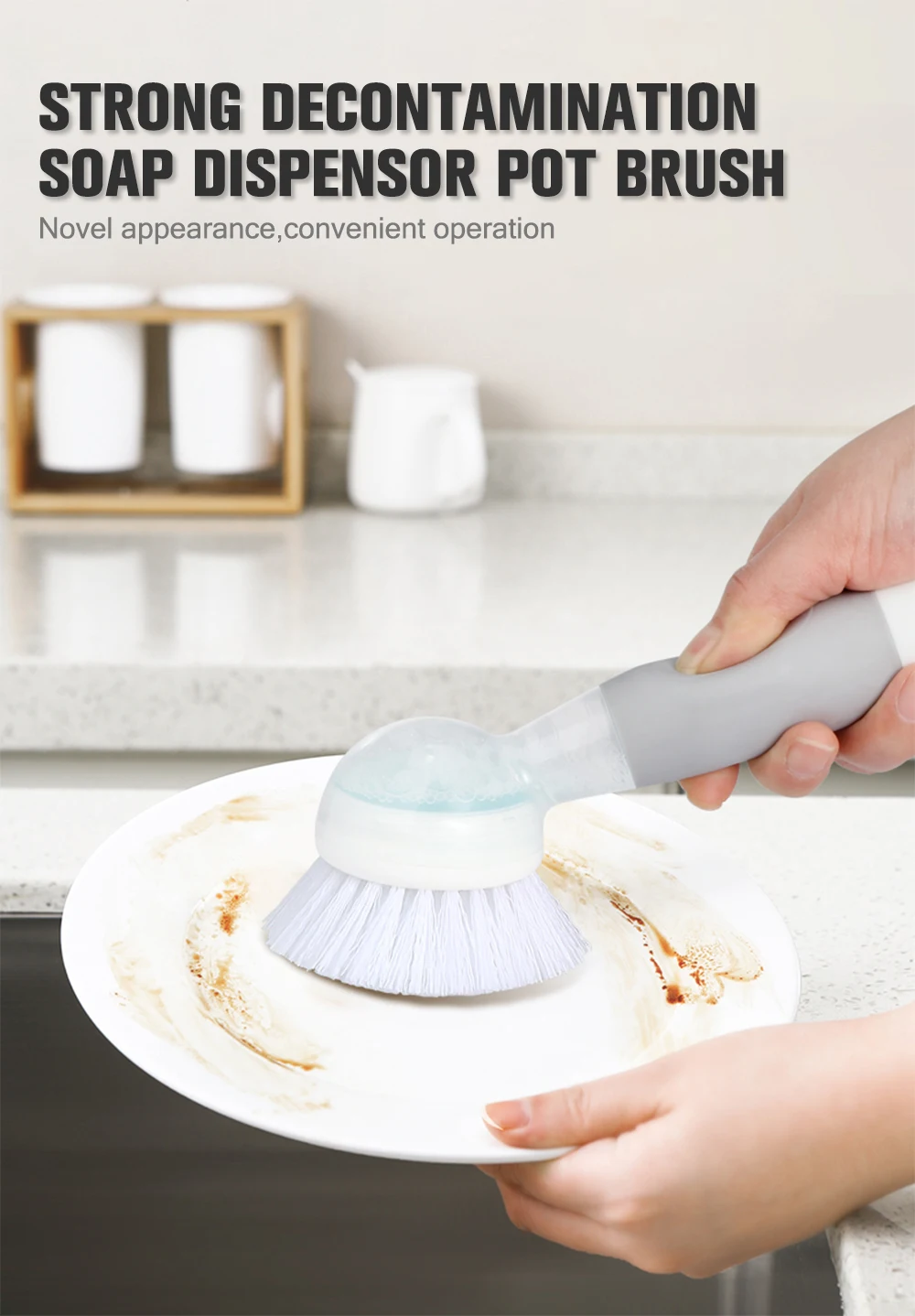 Masthome Plastic Transparent Soap Dispensing Cleaning Dish Washing Brush for Kitchen