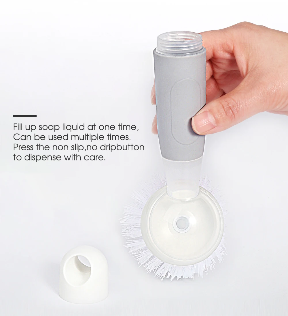Masthome Kitchen Cleaning Whole TPR Coating Round Head Soap Dispensing Dish Brush