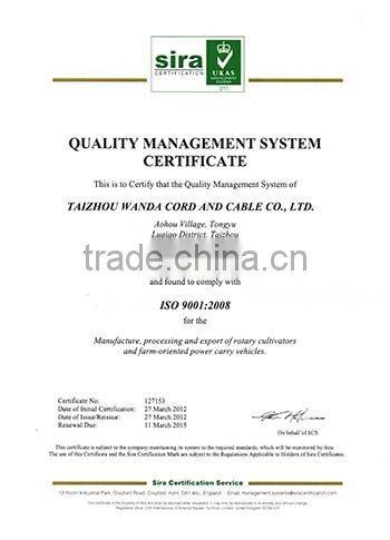 Established in 2002, Taizhou Wanda Cord and Cable Co. Ltd. Is a professional Mini Tiller & Motor barrow manufacture in Mainland China. With high-performance and high-efficiency, not only our products have gained EPA, CE and TUV Gs certificate, but also tiller shape and handle patent have been registered. Suitable for farmland, garden, vegetable greenhouse, our products have keen to low consumption and low pollution.