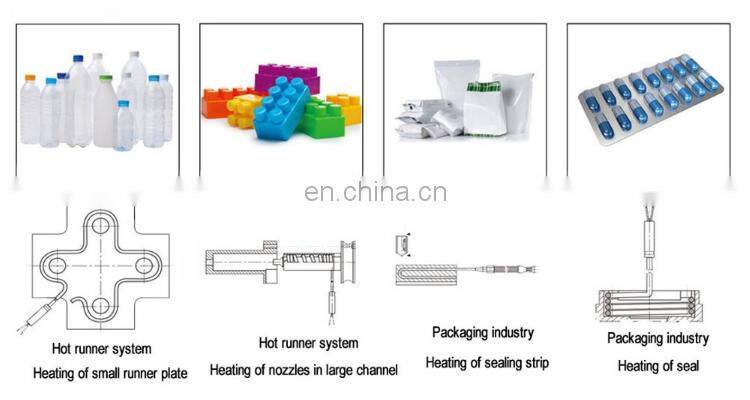 With high working temperature, fast heating,uniform heating precision, long service life, can be automatically controlled area, high thermal conduction, while internal heating material damage, external can be reused. The heaters are annealed to acquire malleability for bending into any shape. Hot runner heaters with built-in thermocouple are also available..
