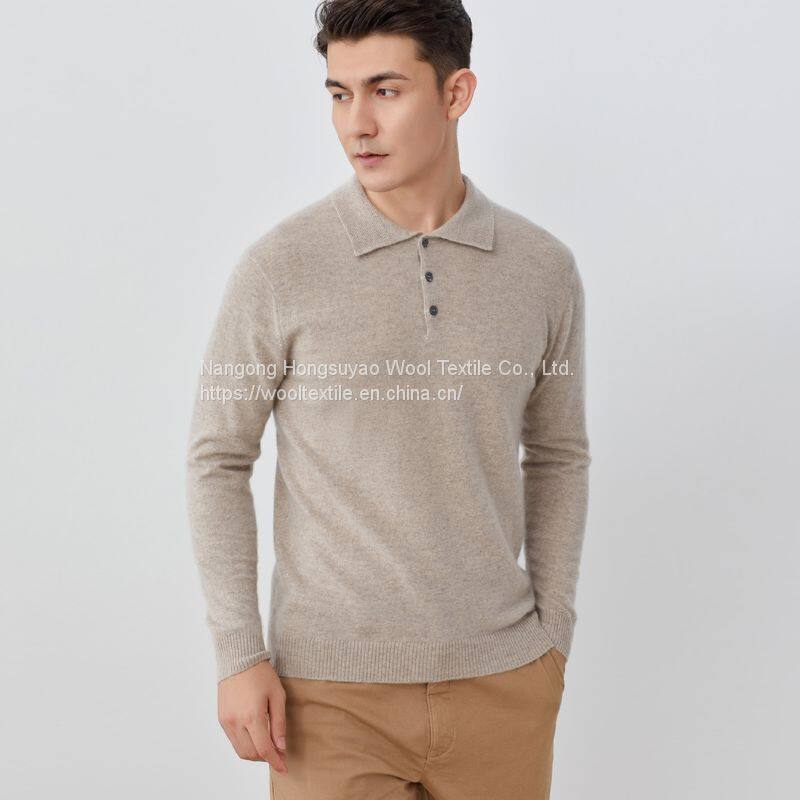 Cashmere Sweater Men's 100% Pure Pullover Cashmere Sweater With Polo Collar