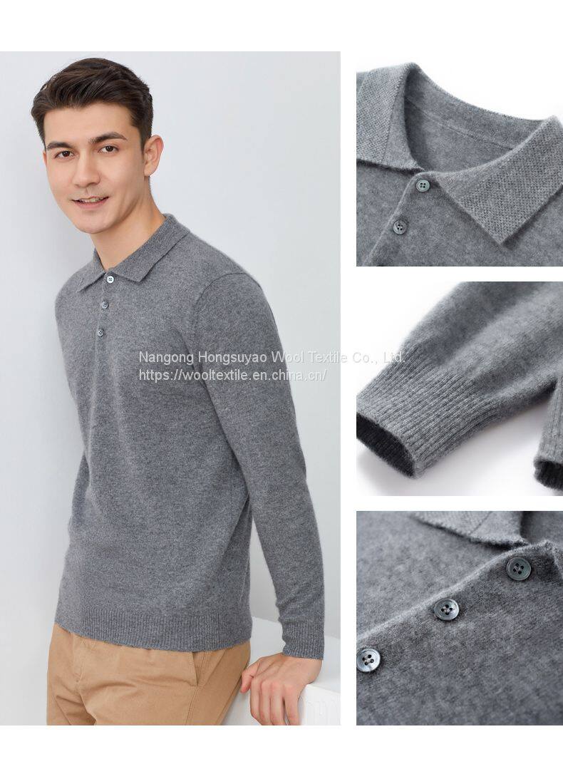 Home > Products > Cashmere Sweater > Pure Color Men Cashmere Polo Collar Style Pullover T-shirt Knitting Spring and Autumn
