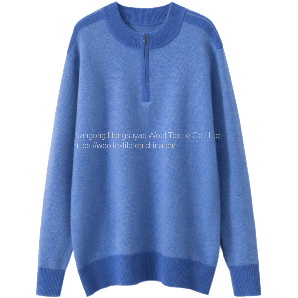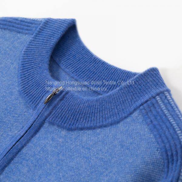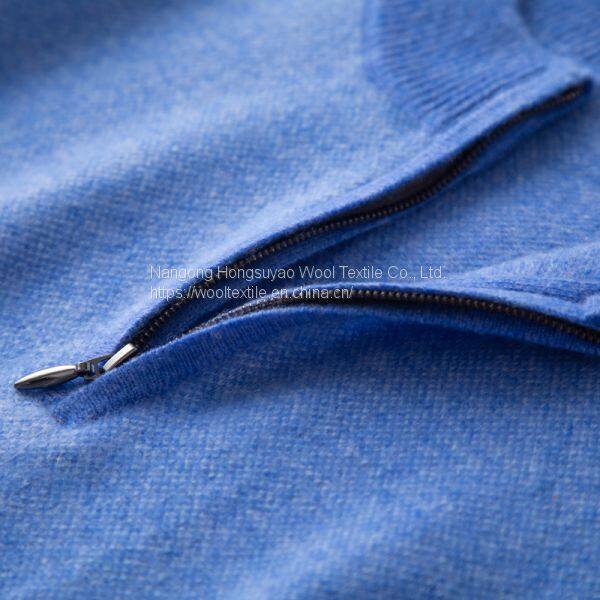 New Design Blue Color Zipper Crew Neck Cashmere Sweater for Sale