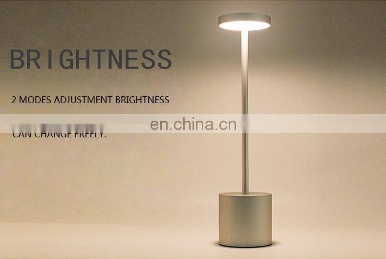 Modern European Style Hotel Lamp Energy Saving Aluminium USB Rechargeable Battery LED Cordless Restaurant Dinner Table Lamp