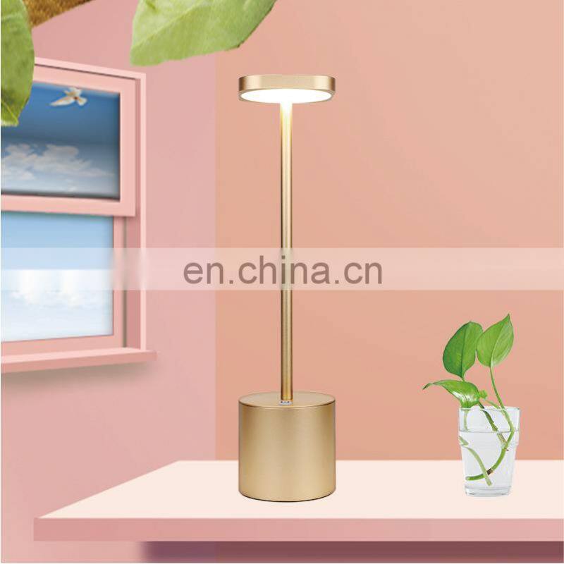 Amazon Luxury aluminium home decorative restaurant gold lampe bedside led table lamp outdoor rechargeable
