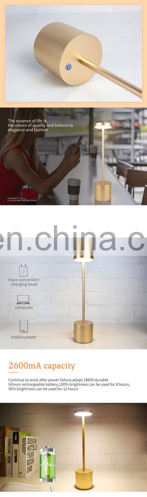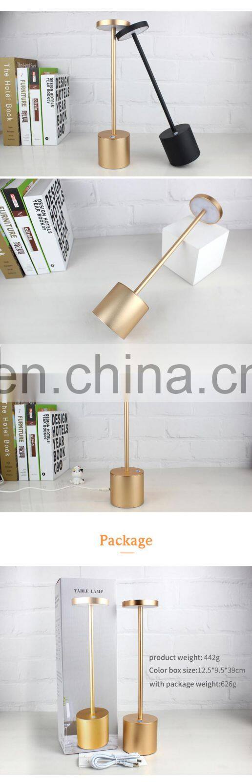 Luxury Metal Battery Powered Operated Out Door Desk Lights Dining Office Hotel Desk Led Restaurant Table Lamps