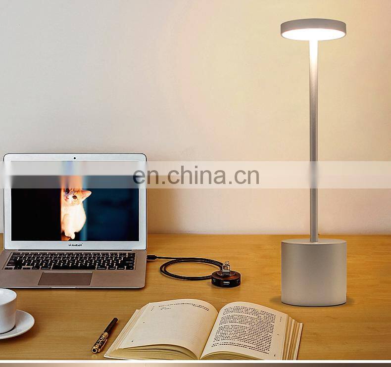 2020 Newest Design Aluminium Table Lamp Lampara De Mesa Cordless Bedside Reading Lamp With Rechargeable Battery