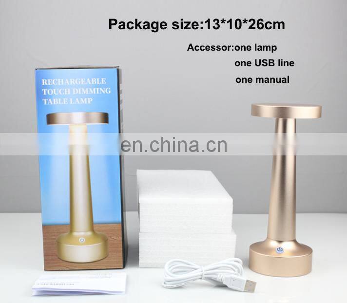 European Style Energy Saving LED Aluminium Hotel Reading USB Rechargeable Cordless Restaurant Table Lamp For Dinner