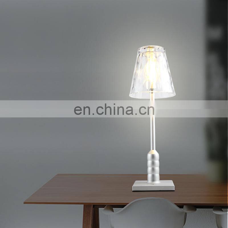 Modern Hotel Energy Saving Glass Shade Desk Lamp USB Rechargeable Battery LED Cordless Restaurant Table Lamp