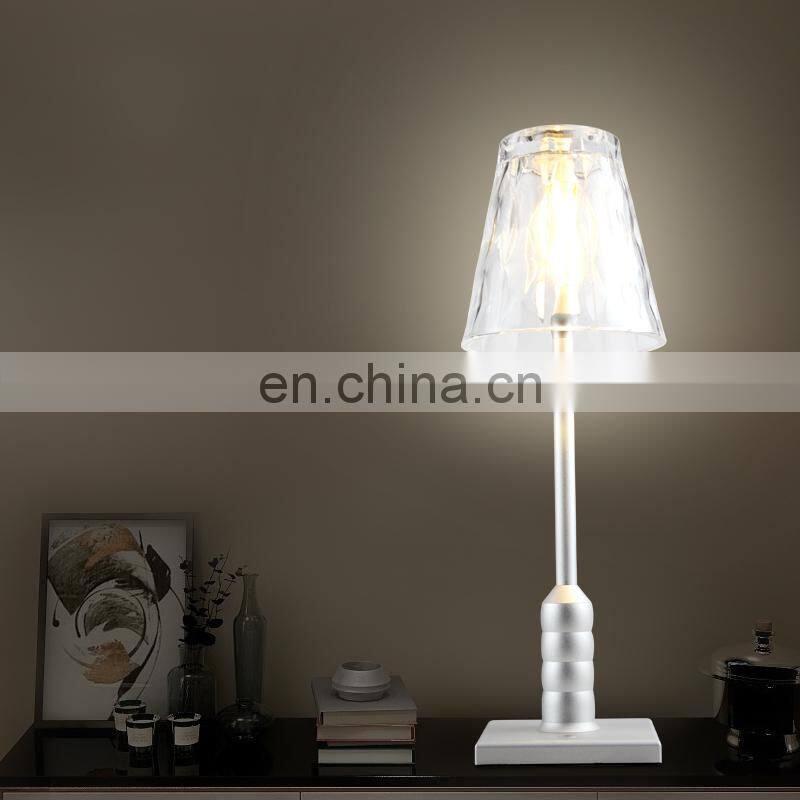 Hotel office home decorative clear glass shade night light Modern warm color rechargeable cordless table lamp