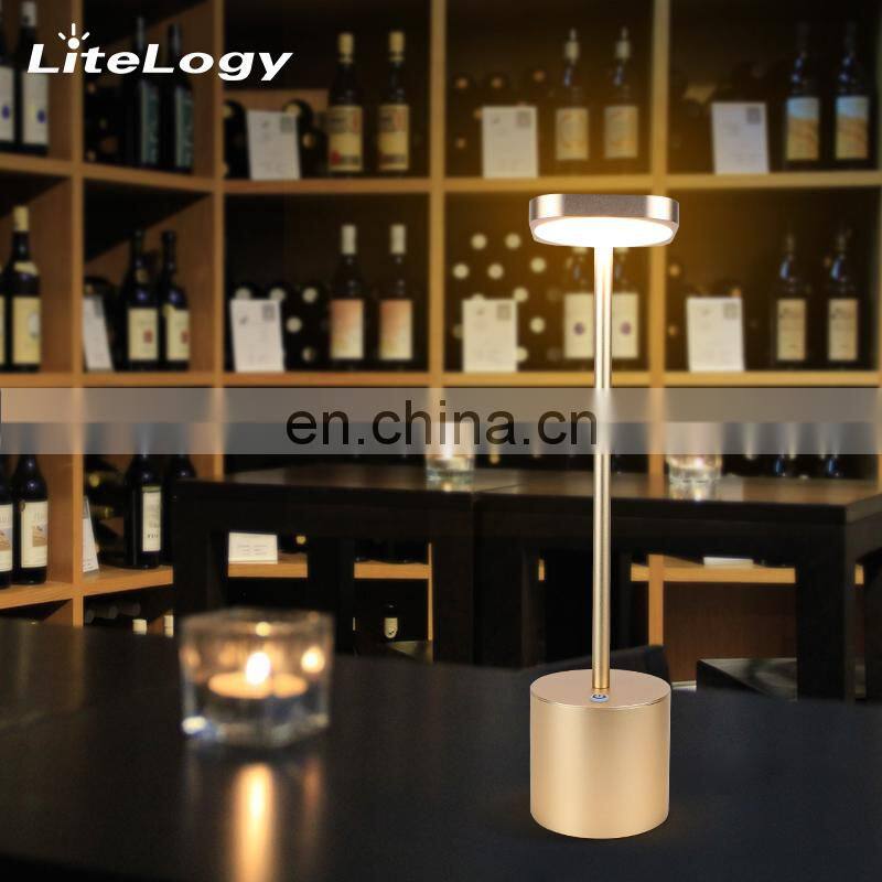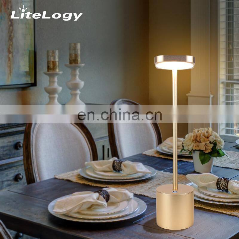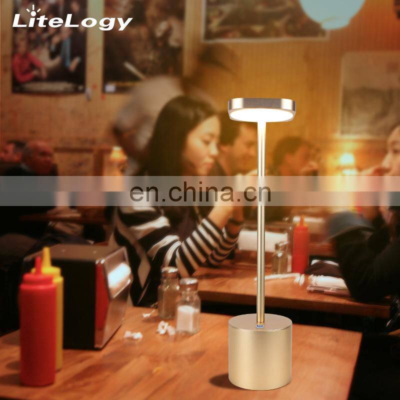 Adjustable Brightness Bedroom Table Lamp Aluminium USB Rechargeable Battery LED Cordless Restaurant Modern Table Light Lamps