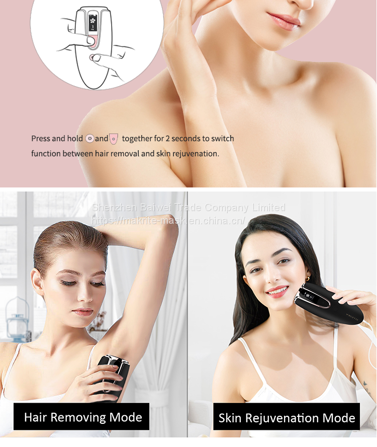【8 Levels & 2 Mode】8 different energy levels to adapt different skin. You can adjust the level according to the skin area and hair growth speed. First time we suggest that start from level 1 to get used to the device and flashes. Two modes design can satisfy your demands on different hair removal parts. The MANUAL Mode is mainly used for small area hair removal, such as bikini line, armpit, fingers, lips; AUTO Mode can be used for large hair removal area, such as arms, legs, stomach and back.