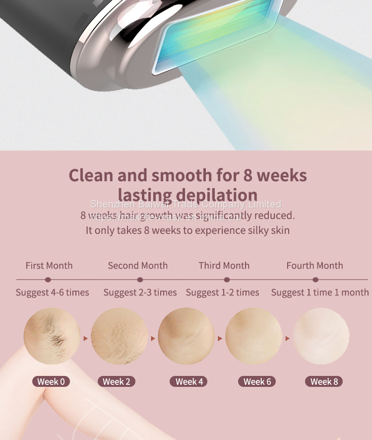 Painless and Gentle: It emits a warm light and discomfort levels are very minimal. Ipl laser hair removal system is very gentle, especially for first-time users or operating on gentle areas, such as the face or bikini line.