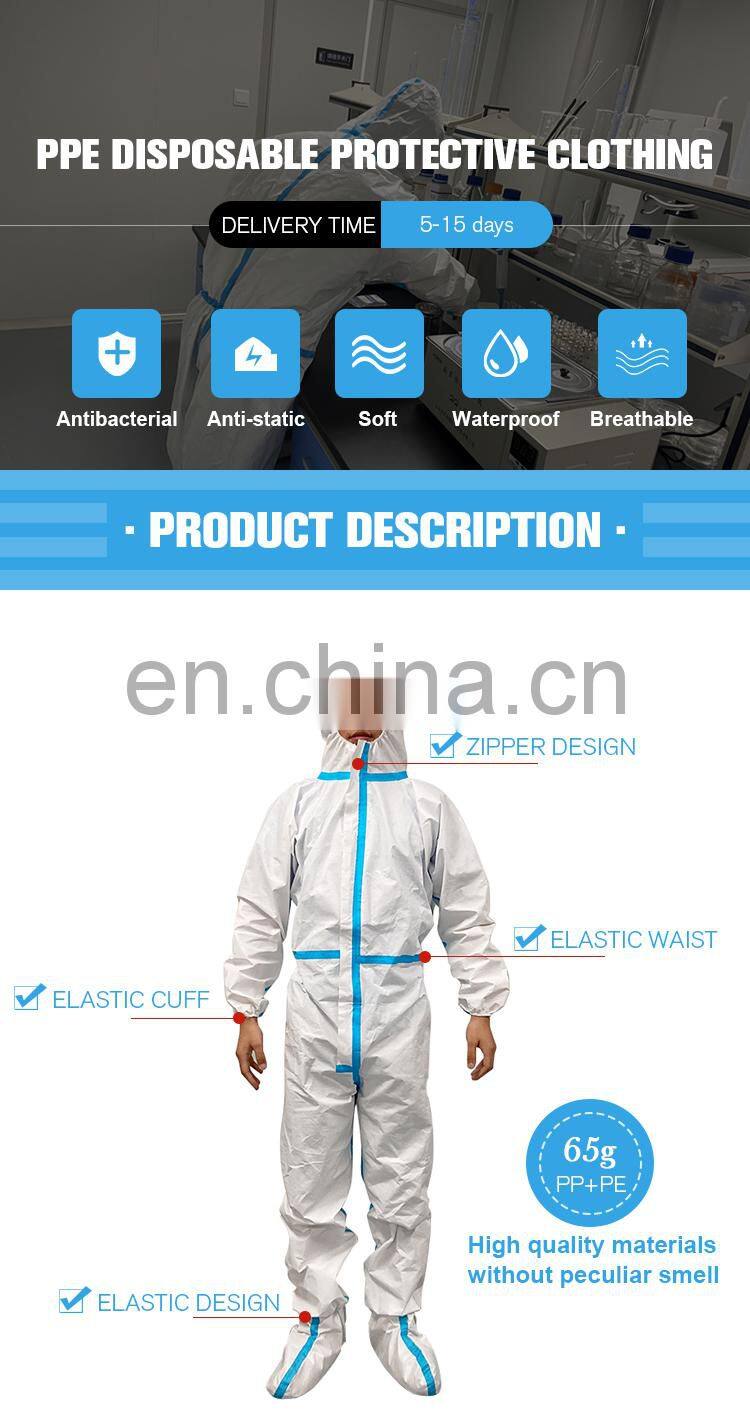 Anti skid sterile waterproof consumable protective coverall hazmat suit ppe with non woven for medical use