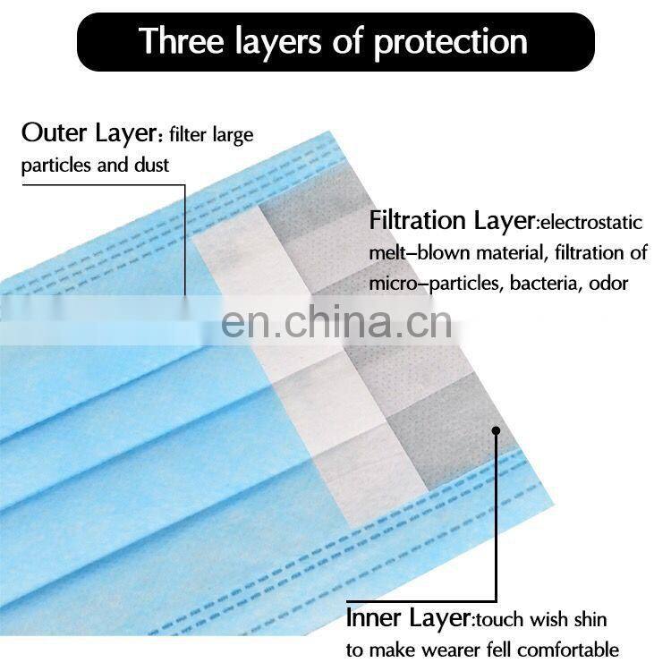 Factory Price Disposable Face Mask 3 Plys Nonwoven ISO Certificate Madical Surgical Mask Ready to Ship