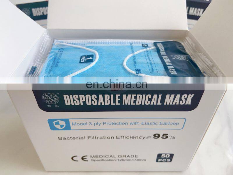 Anti-virus EN14683 IIR 3ply Disposable Medical Face Mask Earloop