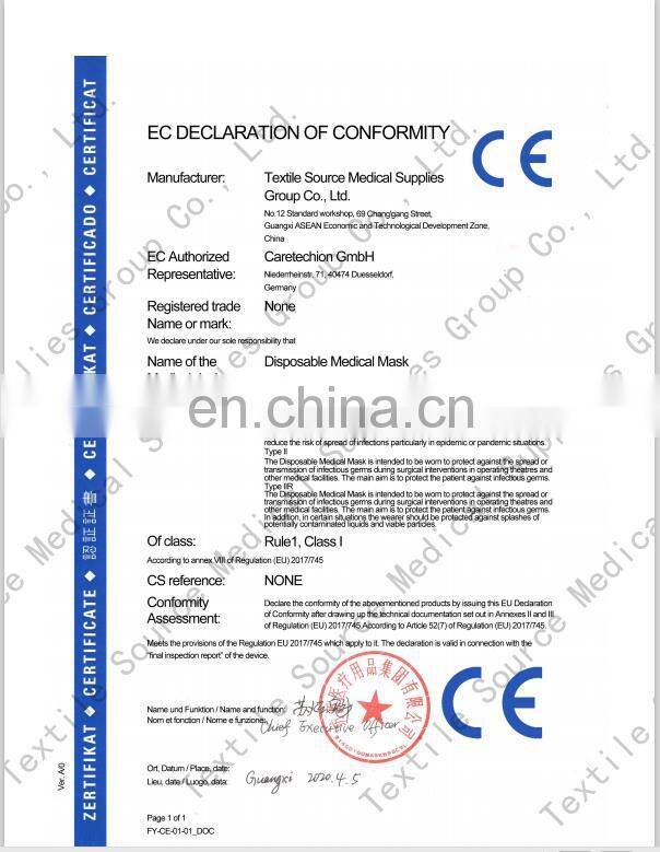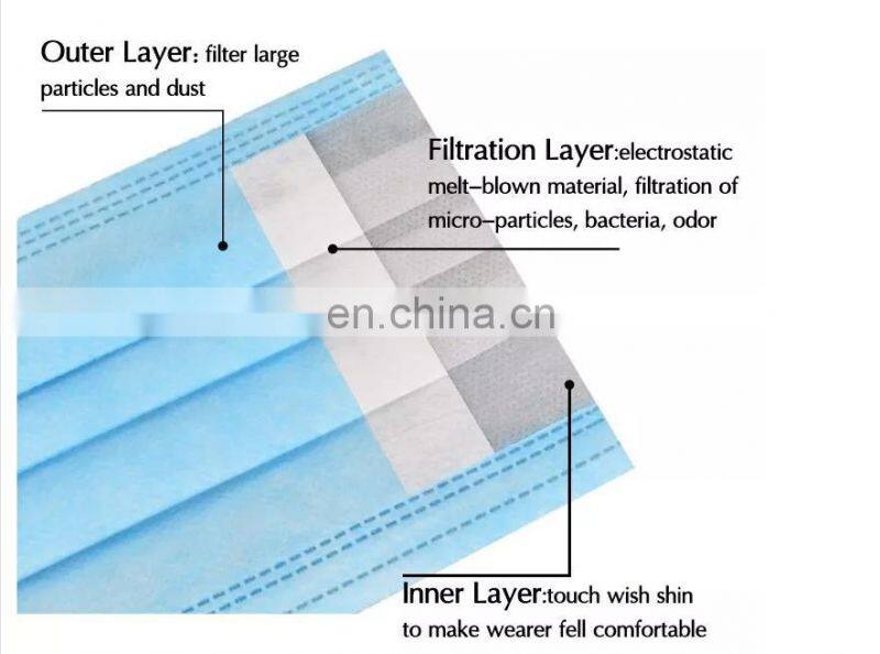 Material  | 2ply Non-woven Fabric (outside +inside) 1 ply Melt-blown Fabric( middle )  |
