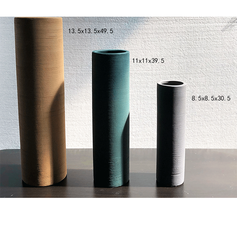 Ceramic vases are fired and made of straight cylinder bottles with drawing process. They are characterized by corrosion resistance. The whole set is made of five different sizes and colors, the gray is small, the green is medium, the yellow is large, and the black is small and medium.