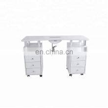 Double White Nail Tables Desk Vacuum Salon Manicure Furniture Nail Art Table