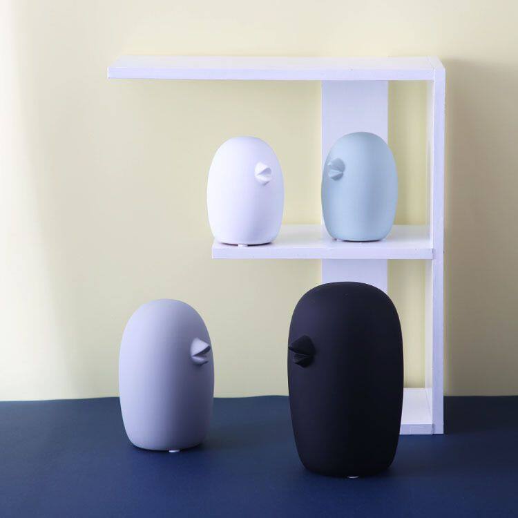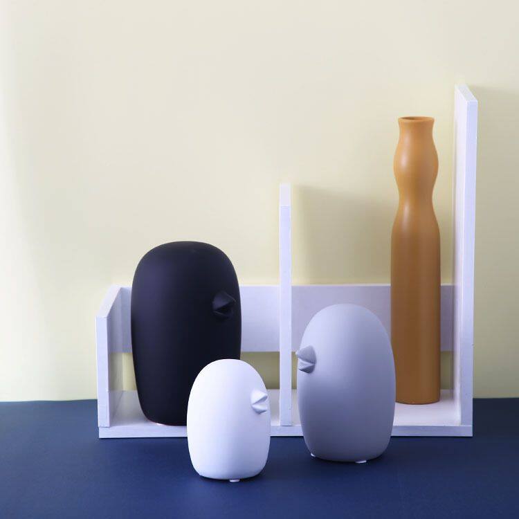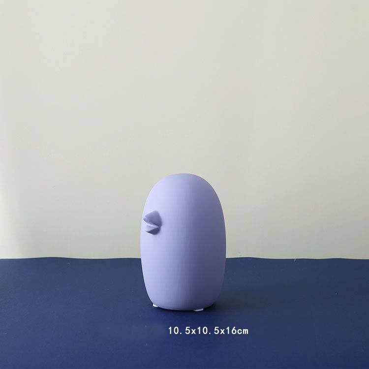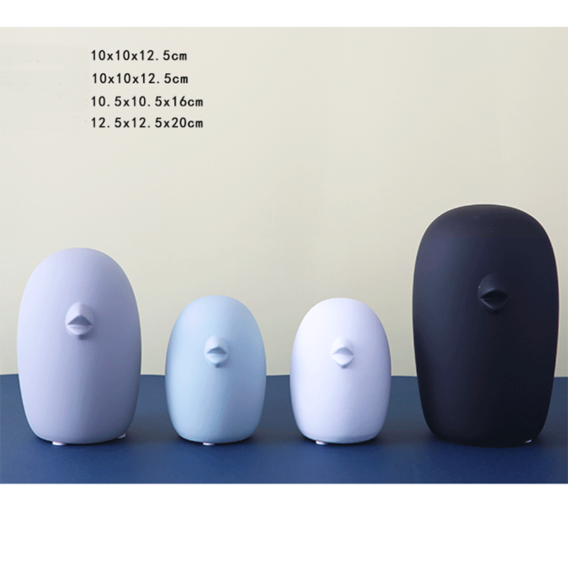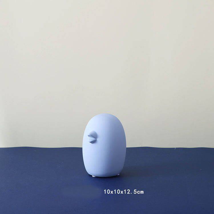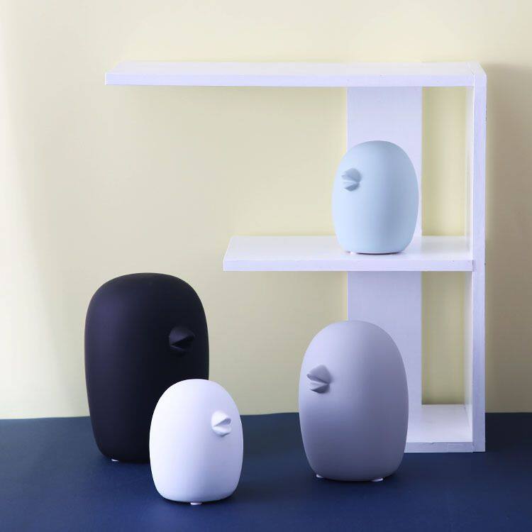 This kind of ceramic decoration is in the shape of a chicken, using the color glaze process, the surface of the spray painting process, made by hand.It is characterized by a frosted feel.The whole set comes in four different colours and sizes, which are black, grey, green and white.