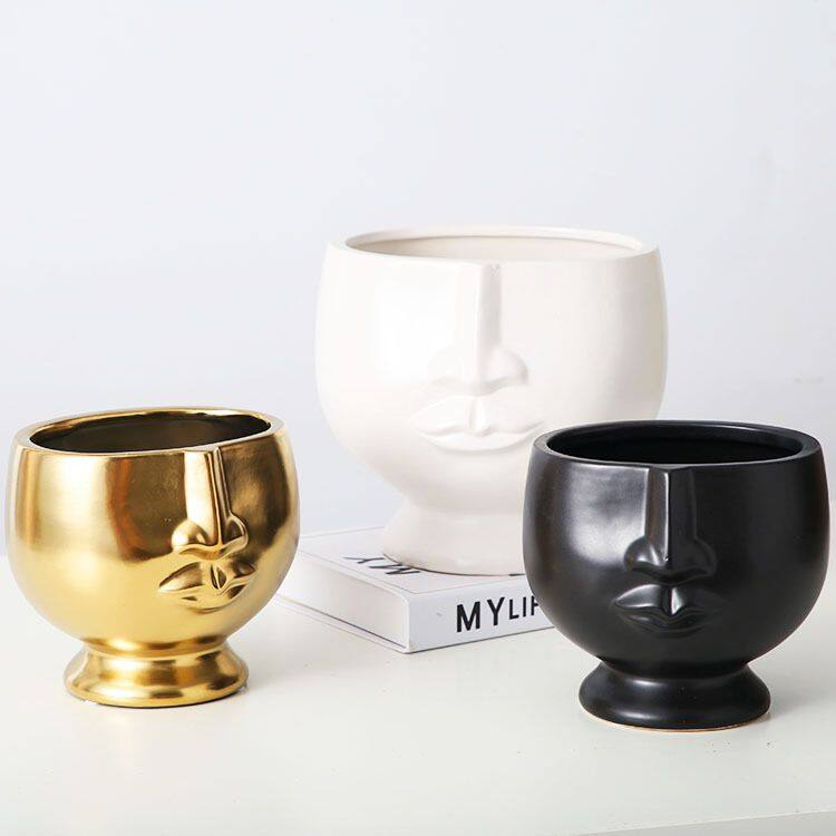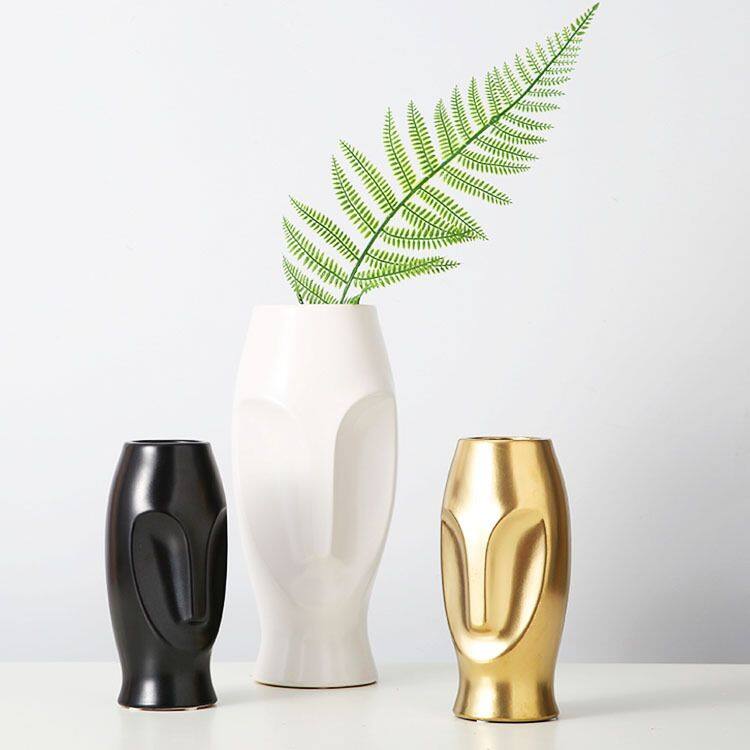 This ceramic vase is artistic portrait, made by hand by firing, and is characterized by its nondeformability and abstract design.It comes in three styles and three sizes in black, white and gold